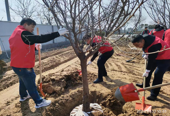 活動現(xiàn)場黨旗飄揚(yáng),黨員干部熱情高漲,揮鍬鏟土、扶樹填土,每個(gè)環(huán)節(jié)都銜接有序、一絲不茍,呈現(xiàn)出一片熱火朝天的忙碌景象,展現(xiàn)了黨員干部積極向上的精神風(fēng)貌。在大家的共同努力下,一株株新栽樹苗昂然挺立,錯落有致,煥發(fā)勃勃生機(jī),為園區(qū)增添一片綠色。