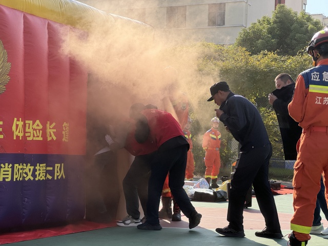 活動(dòng)中,園區(qū)消防大隊(duì)工作人員和公司消防志愿者向現(xiàn)場員工發(fā)放消防安全常識(shí)二十條宣傳單,細(xì)致介紹了各類滅火救援器材的使用方法和初期火災(zāi)處置、火場逃生自救等消防安全知識(shí)。活動(dòng)現(xiàn)場設(shè)置了火場逃生和火災(zāi)處置等模擬場景,參加活動(dòng)的員工積極體驗(yàn),主動(dòng)提升自身應(yīng)對(duì)火災(zāi)的能力。
