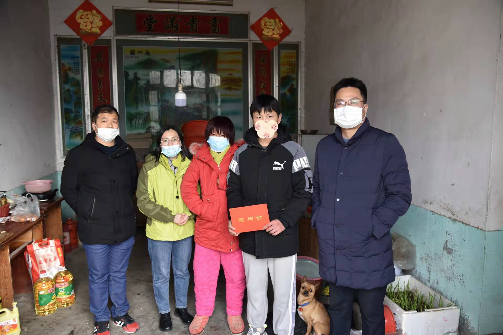 寒冬臘月,新春將至,1月26日上午,建發(fā)公司黨支部書記倪松帶領(lǐng)支部班子和黨員代表到宿城區(qū)支口街道探楚社區(qū)困難學生家中進行走訪慰問,為他們送去節(jié)日慰問品、慰問金,同時送去了節(jié)日的問候。