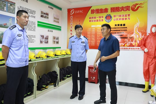 全國(guó)“安全生產(chǎn)月”來(lái)臨之際,6月11日下午,園區(qū)公安分局局長(zhǎng)步愛(ài)民一行人來(lái)園區(qū)公舍視察公舍消防安全相關(guān)工作。