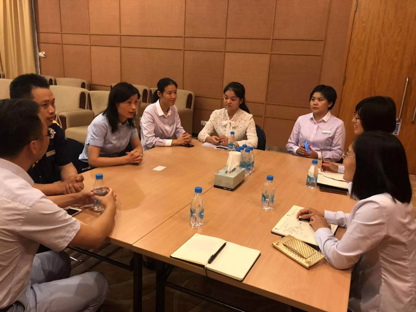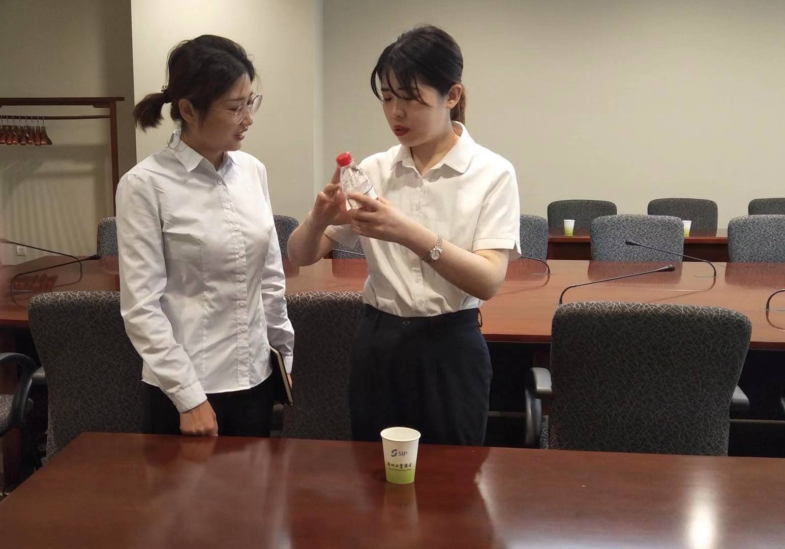 一行人兵分兩路,客服環(huán)境組跟隨蘇州工業(yè)園區(qū)環(huán)境部負責人學習會務服務的會前準備工作、會后清潔工作,重點學習會務實操服務,工程人員跟隨工程部學習會議廳設(shè)備配置和保養(yǎng)。