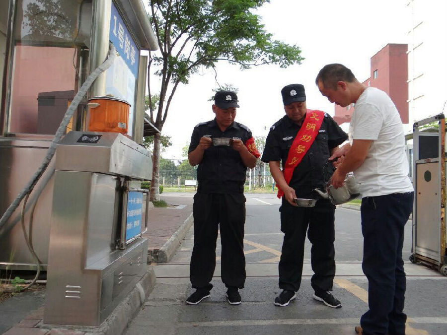 入夏以來,我市天氣異常悶熱,安保兄弟姐妹們不畏炎熱,堅守在崗位上。為做好防暑度夏工作,確保員工身心健康,保持愉悅的心情安全工作。7月5日,公司為一線員工熬好綠豆湯為安保同志們消暑解渴。許多員工表示在這酷暑難耐的季節(jié),綠豆湯給大家送來了一份愜意的清涼,也感受到領(lǐng)導的關(guān)心與愛護。