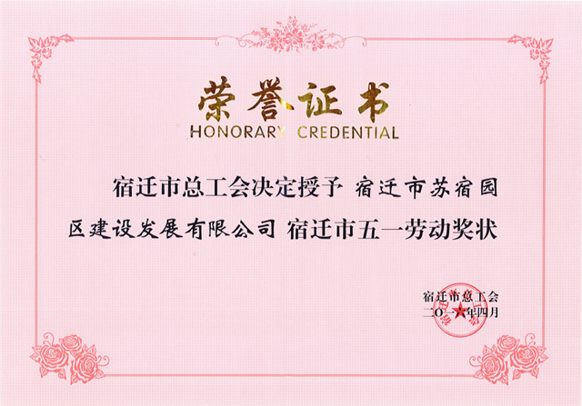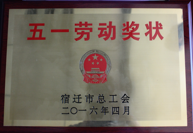 4月29日,在宿遷市慶祝五一國(guó)際勞動(dòng)節(jié)暨表彰五一勞動(dòng)獎(jiǎng)大會(huì)上,公司被授予宿遷市“五一勞動(dòng)獎(jiǎng)狀”榮譽(yù)稱號(hào)。